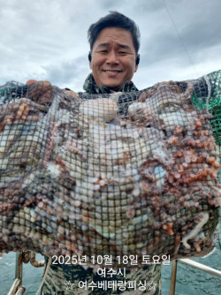 #돌문어출조=>K급들다수포획~매일출항 #선비할인중=>평일전투낚시(물때적용중)#황금물때기간//평일선비할인중~할인중#생활낚시전문선사//자선장직접운항~#주차세상편함(배앞바로주차)//단체환영 안녕하세요. 여수베테랑피싱입니다 #오늘도~돌문어~망태기~조황입니다오전에 씨알좋은 돌문어 마릿수 뽑고 , 인생 돌문어 K급들도 많이 뽑고 왔습니다 요며칠 불어대는 바람과~파도와~사리~물때에조황이 부진했지만 오늘 기상이 조금 나아지니돌문어들이 반응을 시원하게 해주었습니다 오늘은 초보분이 1.8KG 인생문어 뽑으셨습니다돌문어 11뭘도 매일매일 출항합니다 #11월3일부터~자리여유~(평일선비할인중)#망태기~가득~묵직하게~채우러~가봅시당~ #돌문어~전투낚시~예약중 =============================#출항:02시~입항:13~14시(나오면~연장~)#평일전투낚시=>선비할인중(물때적용중)#토요일(23일)~일요일(11월2일)=>마감 #월요일(3일)=>>(문어전투)자리여유 #화요일(4일)=>>(문어전투)자리여유 #수요일(5일)=>>(문어전투)자리여유#목요일(6일)=>>(문어전투)자리여유#토요일(7일)=>>(문어전투)자리여유 #일요일(8일)=>>(문어전투)자리여유 #돌문어 망태기 묵직하게 채우러 가봅시당~민머리 쭈우욱~ 뽑으러 가실분 연락주세요 편리한 시설과 안전한 배로 즐거운 출조가 되도록 최선을 다해 열심히 달려보겠습니다 출조하실분 연락주세요 #갈치~(선물용)~판매합니다~ #예약문의 010 3036 5368 #조황문의 010 8570 5368 예 약 현 황 #토요일(25일)=>(문어전투)마감 #일요일(26일)=>(문어전투)마감 #월요일(27일)=>(문어전투)마감 #화요일(28일)=>(문어전투)마감 #수요일(29일)=>(문어전투) (점검일 휴항)#목요일(30일)=>(문어전투)마감 #금요일(31일)=>(문어전투)마감 #토요일(1일)=>>(문어전투)마감 #일요일(2일)=>>(문어전투)마감 #월요일(3일)=>>(문어전투)자리여유#화요일(4일)=>>(문어전투)자리여유#수요일(5일)=>>(문어전투)자리여유#목요일(6일)=>>(문어전투)자리여유#금요일(7일)=>>(문어전투)자리여유#토요일(8일)=>>(문어전투)마감 #일요일(9일)=>>(문어전투)마감 #월요일(10일)=>(문어전투)자리여유#화요일(11일)=>(문어전투)자리여유#수요일(12일)=>(문어전투)자리여유 출조하실분 연락주세요 ~~^^ #예약문의 010 3036 5368 #조황문의 010 8570 5368 홈페이지 예약 아래클릭 https://veteranfishing.sunsang24.com/#여수베테랑피싱#베테랑피싱#갈치낚시#한치낚시#감성돔낚시#심해갑오징어낚시#돌문어낚시,#갑오징어낚시#내만갑오징어낚시#외수지낚시#쭈꾸미낚시#타이라바#봄도다리낚시#여수생활낚시#여수바다낚시#여수체험낚시#뉴베테랑호#여수낚시. *** 여수 베테랑피싱 예약 안내 ***예약문의 : 010-3036-5368조황문의 : 010-8570-5368오시는길 : 전남 여수시 돌산나루터 (내비에 돌산나루터 치시고 오시면 됩니다.)홈페이지 : http://veteranfishing.sunsang24.com/
