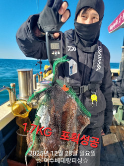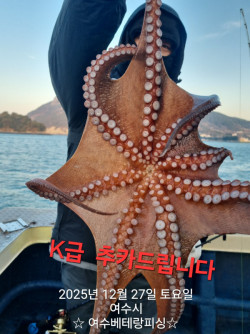 #돌문어출조=>금,토,일자리여유/실시간#선비할인중=>전투낚시(9만원)선비할인#쭈꾸미출조=>해맞이출조(1일)~해돋이#감성돔출조=>5짜.5짜/1월부터출항~#생활낚시전문선사//자선장직접운항~#주차세상편함(배앞바로주차)//단체환영 안녕하세요. 여수베테랑피싱입니다 #실시간~대물돌문어~대박조황~진행중...#2.6KG,2.3KG,2KG1.5K,1.3K,1.1K,1.1K,1.05K....현재 대물돌문어 마릿수 잘 나오고 있습니다 #금요일,토요일,일요일~마지막~출항합니다.#전투낚시=선비9만원(평일,주말)#대물돌문어~인생문어 만나러 가봅시당~올해 마지막 돌문어 시즌 끈적하고 묵직한 손맛~몸맛~입맛 즐기실분 연락주세요 #출항일정~잔여~자리안내 ===============================#수요일(31일)=>(문어전투)점검일/휴항 #목요일(1일)=>>(쭈꾸미/해돋이)3자리여유#금요일(2일)=>>(문어전투)자리여유/9만#토요일(3일)=>>(문어전투)자리여유/9만#일요일(4일)=>>(문어전투)자리여유/9만 #돌문어출조=>>1/4일까지~출항 #쭈꾸미출조=>>1월1일(해돋이)~출항 #감성돔출조=>>1월5일부터~출항합니다 #대물돌문어 묵직한 손맛 즐기러 가봅시당~민머리 쭈우욱~ 뽑으러 가실분 연락주세요 편리한 시설과 안전한 배로 즐거운 출조가 되도록 최선을 다해 열심히 달려보겠습니다 출조하실분 연락주세요 #갈치~(선물용)~판매합니다~ #예약문의 010 3036 5368 #조황문의 010 8570 5368 예 약 현 황 #수요일(31일)=>(문어전투) 점검일 #목요일(1일)=>(쭈꾸미/해돋이)3자리여유 #금요일(2일)=>>(문어전투)자리여유/9만#토요일(3일)=>>(문어전투)자리여유/9만 #일요일(4일)=>>(문어전투)자리여유/9만#월요일(5일)=>>(감성돔)점검일 휴항 #화요일(6일)=>>(감성돔)점검일 휴항 #수요일(7일)=>>(감성돔)점검일 휴항 #목요일(8일)=>>(감성돔)예약중#금요일(9일)=>>(감성돔)예약중 #토요일(10일)=>(감성돔)예약중 #일요일(11일)=>(감성돔)예약중#월요일(12일)=>>(감성돔)예약중 #화요일(13일)=>>(감성돔)예약중 #수요일(14일)=>>(감성돔)예약중 #목요일(15일)=>>(감성돔)예약중 출조하실분 연락주세요 ~~^^ #예약문의 010 3036 5368 #조황문의 010 8570 5368 홈페이지 예약 아래클릭 https://veteranfishing.sunsang24.com/#여수베테랑피싱#베테랑피싱#갈치낚시#한치낚시#감성돔낚시#심해갑오징어낚시#돌문어낚시,#갑오징어낚시#내만갑오징어낚시#외수지낚시#쭈꾸미낚시#타이라바#봄도다리낚시#여수생활낚시#여수바다낚시#여수체험낚시#뉴베테랑호#여수낚시. *** 여수 베테랑피싱 예약 안내 ***예약문의 : 010-3036-5368조황문의 : 010-8570-5368오시는길 : 전남 여수시 돌산나루터 (내비에 돌산나루터 치시고 오시면 됩니다.)홈페이지 : http://veteranfishing.sunsang24.com/